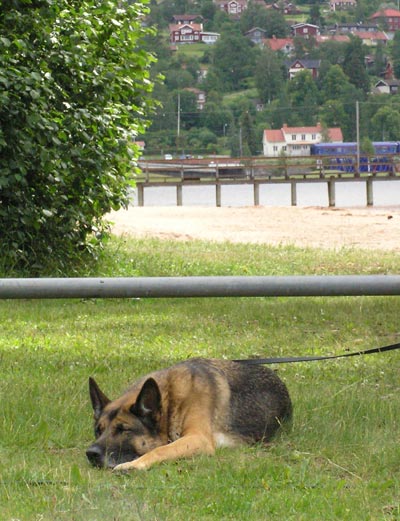 Idag har hundarna fått gå promenad med husse medan jag var på jakt efter födelsedagspresenter åt samma husse. Imorgon har jag ”fusksemester”, dvs en extra semesterdag för att hinna landa efter lägret. Den kommer bland annat gå åt till att städa husvagn och bil. Ingen av dem är speciellt fager efter en lägervecka… Ett litet lydnadspass ska jag nog kunna få till också hoppas jag. Att lägga spår är strängt förbjudet i tre-fyra dagar enligt intstruktören, åtminstone för Karlssons del. Nu måste hundarna få smälta alla intryck, och sen fortsätter vi där vi slutade!