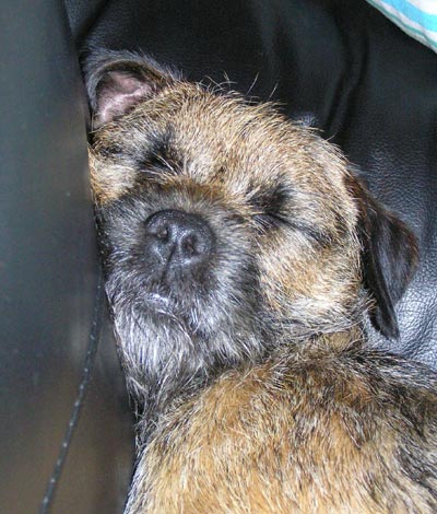 Förmiddagen ägnades bl a åt ett spår med K. Nu har han fått upp tempot rejält det lilla träsktrollet. 🙂 Det är knappt så att matte hänger med i svängarna längre. Och ändå slarvar han inte. Det är klart att han tappar spåret ibland men han är oftast väldigt rationell när han ska tillbaks. Alla sju pinnarna tog han också utan problem. Riktigt snyggt var det. När han var framme vid slutapporten var frågetecknen betydligt färre (och mindre) än förut. När han sen fick bära pipleksaken som en trofé ända hem var lyckan fullständig. Och det är bara att konstatera; det är i skogen vi hör hemma, och möjligen på appellplan. Vi är rörande överens om att det är betyyydligt roligare än utställning, basta!