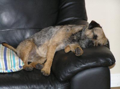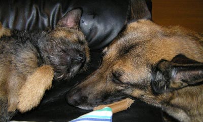 Trött bruksschäfer som undrar om hennes nya matskål verkligen ska vara sååå liten? Detta var strax innan hon föll i djup sömn…