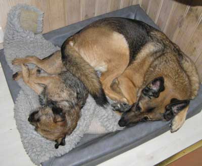Är det nå’t Karlsson är bra på så är det att bädda. Fast hans uppfattning om en bra bäddning är inte alltid, eller snarare väldigt sällan, helt överensstämmande med min och Izas uppfattning… Normalt sett ska fällen ligga plant i Bia-bädden, men K ser noga till att han får huvudkudde, fotpall, ryggvärmare och, som pricken över i, en schäfersvans som extra värmekälla. 😀