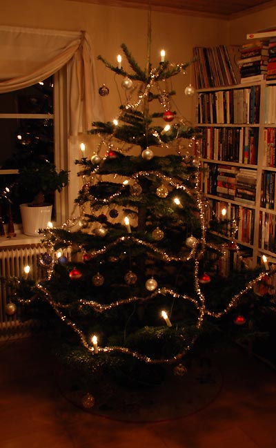 Egentligen var det lite synd att slänga ut den. Fortfarande lika fin som för 2,5 vecka sedan. Inte ett barr har krökts. Inte ett barr har ramlat (nåja, ett par stycken kanske). Inte en kula har ramlat. Inte en hund har dansat ringdans.