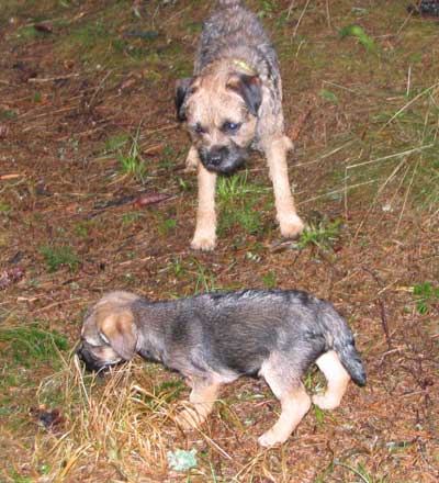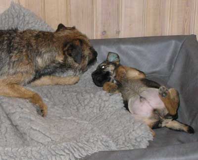 Iza är hemhämtad och funderar som bäst på om hon tillbringat senaste dygnet i en tidsmaskin istället för hos hundvakten P? När hon lämnade hemmet igår så fanns det en vuxen (om än något odräglig) borderterrier. När hon kom hem så fanns det ett litet ”skräp”…? Vad hände? Har jag förflyttats två år bakåt i tiden, undrar hon säkert. K fick nämligen åka med svärmor hem redan idag när dom ändå var här och fikade. Då slipper jag flänga som en stolle och lämna honom i morgon bitti när jag vinkat av pappa och A.
