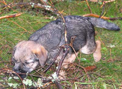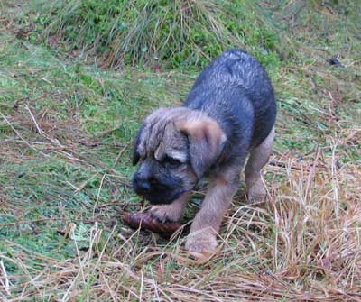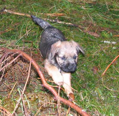 Gino verkade tycka att skogen var helt OK. Det fanns massor av saker att tugga på… 😉 Karlsson sprang som en stolle och kollade Gino med jämna mellanrum. Kanske hade han växt till sig lite och fått lite ordning på benen så att det gick att använda honom till nå’t vettigt, men … näää.