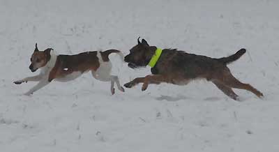 Karlsson hade nog utan problem kunnat springa både ikapp och förbi Olga, men föredrog oftast att springa en bit efter med ett förtjust drevskall. 🙂