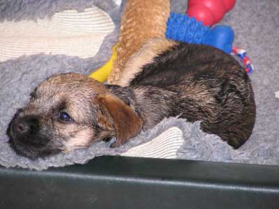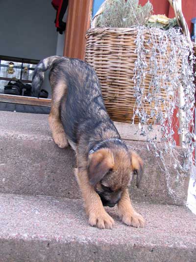 Så över till ämnet i rubriken; Gino. Äntligen har det kommit några nya bilder på den lille herr’n. Precis som med Karlsson så går utvecklingen fort. Jämfört med t ex en schäfer så börjar en border på ett tidigt stadium likna en hund istället för en valp. Den lilla köttbullen jag stoppade in i bilen för två veckor sedan när de skulle åka hem utvecklas tydligen lika snabbt han.