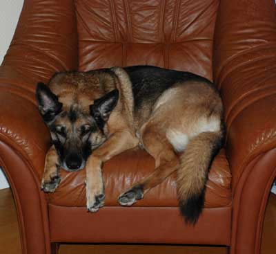 Husse gick en rejäl promenad med Iza och sedan fick hon också ett spår. Här kör vi upp- och nedvända världen, appellhunden får skogsspår och högreklass-hunden ett appellspår. 😉 Nåja, appellspår var det väl inte riktigt men det gick på ”vår” åker. Hon fick ett upptag på ca 15 meter som hon löste klockrent och sen spårade hon på det stora hela jättefint. Jag hade gjort många täta vinklar och en ganska lång återgång. Där fick hon jobba på en stund innan hon löste det, men det gick, det också. 🙂 Alla pinnar, inkl. skogspinne, hade vi också med oss hem. Vi passade också på att inviga nome-selen hon fått ärva från pappas schäfrar. Den är måttsydd åt en av hans gamla schäferhanar. En mycket stadig och stabil herre var han, Brindo. Men hur dom måtten togs skulle jag gärna vilja veta för selen sitter riktigt tight på Iza, och hon är en ganska finlemmad tik, 58 cm och 27 kilo. Dock verkade hon inte misstycka, eller vara störd av det, så vi kör väl med den ett tag så får vi se.