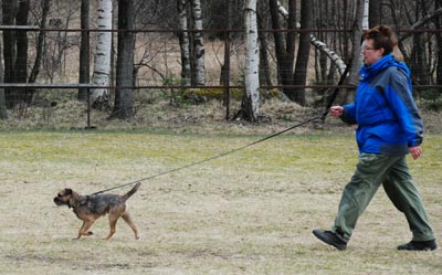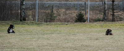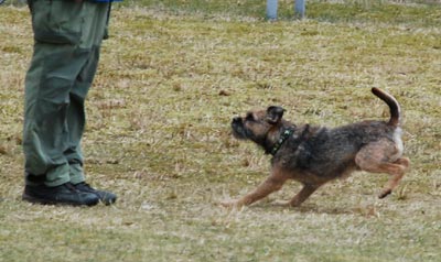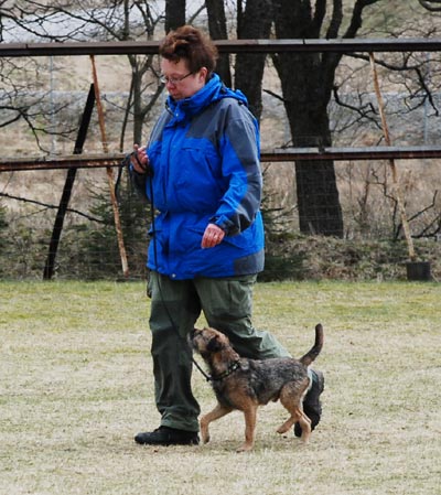 När det var dags för budföring valde han, för första gången i sitt liv, att INTE springa till mottagaren?! Han tog en lov ut på plan, sprang till kanten, kissade på en stolpe och kom sedan tillbaks till mig när jag kallade. Han var hemskt söt när han gjorde det, men söthetspoäng utdelas tyvärr inte så det blev dagens enda nolla.