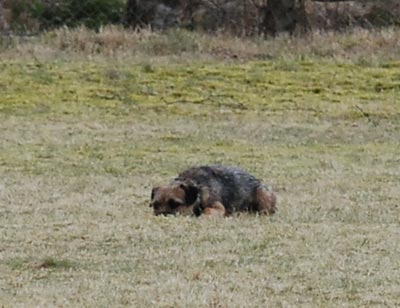 Nyfiken boxertik och neutraliserande Karlsson. Det ser ut som om de ligger 15 meter ifrån varandra men det skyller jag på kameran. Det var faktiskt bara 5 meter!