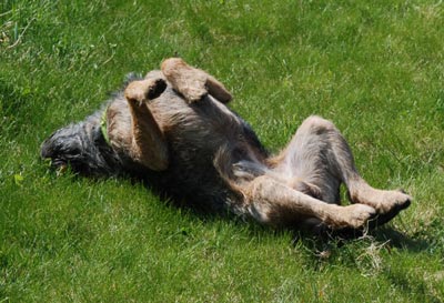 Tja, vill hon inte leka med mig, och jag inte får ta tigern så får jag väl rulla på rygg i gräset, och sola magen, istället.