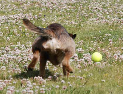Det är gott att åtminstone ha ett brukselitmoment och ett lydnadselitmoment klart! Eller klart, och klart…? Jag syftar iaf på sådana moment som inte också förekommer i de lägre klasserna. Dvs ”slät” metallapportering och hopp-metallapportering. Men det kanske är att ta i att kalla hopp-apport klart? 50% av gångerna sprang han bredvid åt ena eller andra hållet, men ibland blev det hopp antingen fram eller tillbaks, så det finns potential.