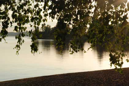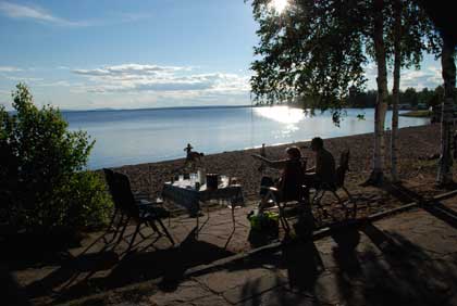 Vår campingplats i år slog, mot alla odds, våra tidigare kanonplatser. På en relativt avskiljd liten kulle med egen stenlagd terrass i två etage (!!), alldeles ovanför sandstranden mot Siljan! Enda minuset var att vi inte fick sjöutsikt från förtältet om vi skulle ställa husvagnen regelmässigt, men det kunde jag faktiskt leva med.