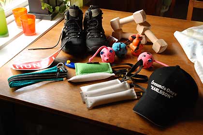 I bakgrunden syns kängorna. Sen inhandlades diverse ”nödvändiga” prylar så som: