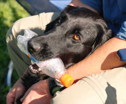 Heter man Kavu och är flat coated retriever är lycka synonymt med att sitta inklämd mellan husse Martins ben med en tom Loka-flaska i munnen. Vissa är lättroade. 🙂