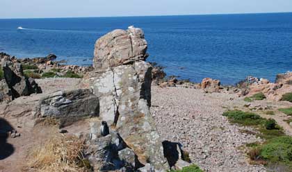 Därefter åkte vi till Hovs Hallar. Snudd på bergsbestigning så vi tog oss aldrig ned till vattnet, men visst var det spektakulärt med klappersten och raukar. Grottor skulle det visst finnas också. Det roligaste var dock nästan när Iza insåg att det inte fanns något staket mellan henne och korna! Då visade hon helt plötsligt ett mycket stort intresse för vegetationen på andra sidan (från korna sett) stigen som gick rakt igenom kohagen. 🙂