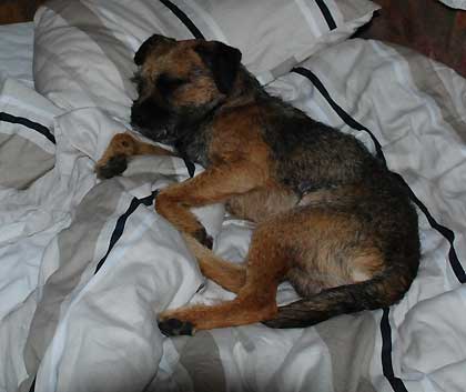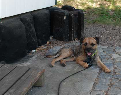På torsdagen shoppades det lite och på eftermiddagen åkte vi över Hallandsåsen till Vejbystrand och hälsade på J med familj. Familjen består, förutom av människor, av två borderterriers från Karlssons uppfödare. Den ena är halvbror till K och den andra … nå’t annat. Släkt är dom i alla fall. Då vi kände att det kunde bli lite väl mycket att släppa ihop tre hanhundar och så Iza mitt uppe i allt hade J vänligheten att ”låsa in” sina båda så att K och I fick rasa av sig i den underbara inhägnade trädgården, ett stenkast från havet! Trädgården var självklart full av hundleksaker och K hittade snabbt en latexpip. När han började tugga sönder den var jag rädd att han skulle svälja bitarna och tyckte att jag löste problemet när jag kastade upp den mitt på barnens studsmatta. K var dock inte riktigt överens med mig på den punkten. Han var en syn för gudar när han balanserade omkring på bakbenen under studsmattan. Det var preciiis så att han nådde med framtassarna så att han kunde ”putta” pipen åt olika håll. Eftersom han trots allt inte fick tag på den löste han problemet på annat sätt. Efter lite taktiska funderingar hittade han pallen som människobarnen använder för att ta sig upp och sen var det plättlätt. Upp på pallen, vidare till studsmattan och så var det problemet löst! 😀 Det var i alla fall en fantastiskt trevlig eftermiddag, (som avslutades med havsbad för Karlsson) och det gör vi gärna om. (J, jag vet ju att du ”tjuvläser” här.) Tyvärr glömde jag fullständigt bort mina åtaganden som fotograf så några bilder från denna tillställning blir det inte.