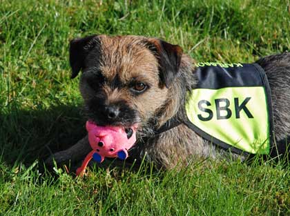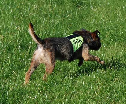 Numera har hon ett kanonbra skall, rent ljudmässigt. Folk som bara har hört henne på avstånd har ibland trott att det varit en skyddhund under bevakning! Dock finns en hel del att önska av rörelsmönstret. Vid första skallet är hon alltid på väg att nypa av mig nästippen alt. knocka mig. Sen sjunker hon ner en liten bit men det är fortfarande ”rörligt”. Det blir bättre efter en fyra-fem försök, men det har man ju inte på sig på tävling och därför har poängen blivit som den blivit.