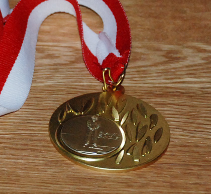 Det var utgång med jobbet (födelsedagsuppvaktning) och det hela började med minigolf (inomhus, 18 hål), där jag hade förmånen att ingå i det vinnande laget. Ärligt talat gjorde jag ett ganska hyfsat resultat, även om mina manliga lagkamrater var ett (eller flera) strån vassare. Vann gjorde vi i alla fall och guldmedalj blev det. 🙂