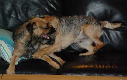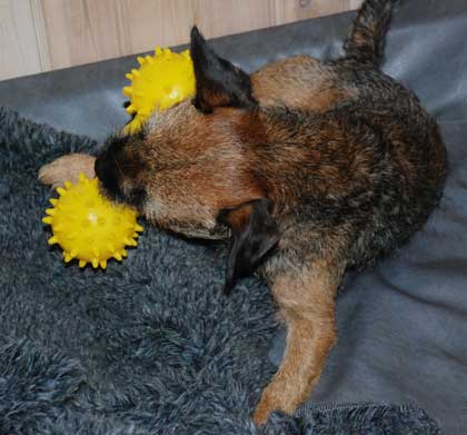 När vi dreglat färdigt åkte vi hem och efter kom pappa, A och Gino. Trodde att de båda unga herrarna skulle kunna umgås på ett vettigt sätt inomhus men det slutade med hysterisk jaktlek (inkl. drevskall) så det blev ett ganska kortvarigt äventyr. Försökte knäppa kort, och EN bild lyckades jag få, så fort gick det. 🙂 Det blev inte ens några dåliga bilder, utan helt enkelt bara EN!
