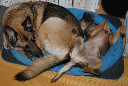 (Blogginnehaverskans kommentar: Jag har inga som helst minnen av att polishundarna vi hade hemma någonsin åt hallonbakelse på köksbordet? Tänk vad saker ändras när man blir borderterrierägare. 🙂 )