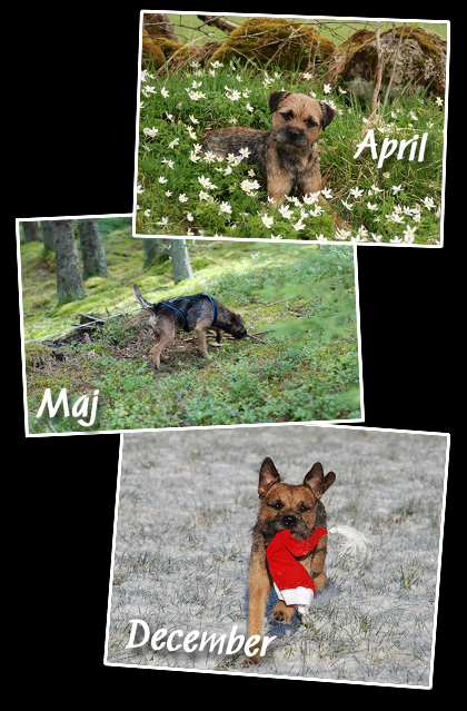 För fjärde året, dvs varje år som det varit möjligt eftersom han inte fyller fyra förrän på fredag, är Karlsson kalenderpojke i Borderterriersällskapets kalender. Den här gången får han representera hela tre månader; april, maj och december. Kul!
