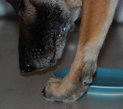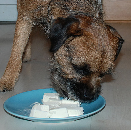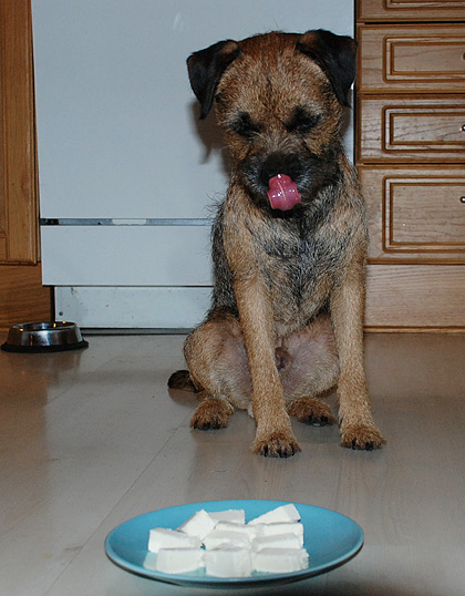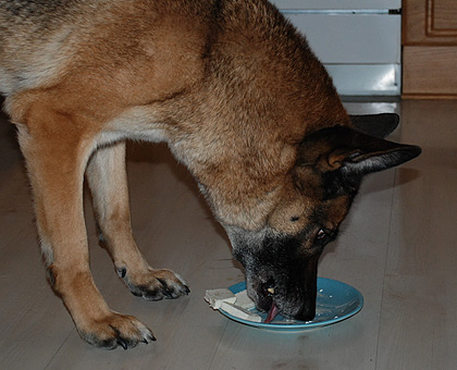 Gårdagskvällens kalas gick fort. Jättefort! Men för att dra ut på det hela lite fick hundarna kalasa en i taget. Födelsedagsbarnet blir nämligen så stressad när han ska äta glass i storasysters närvaro att han nästan sätter i halsen och kräks upp alltihop. En i taget är alltså bra.