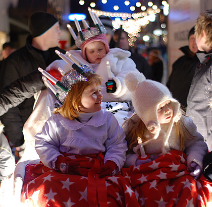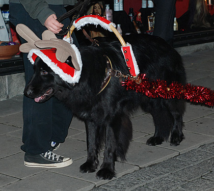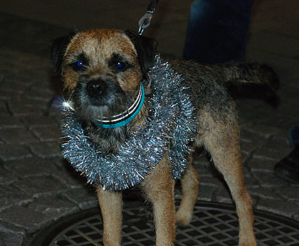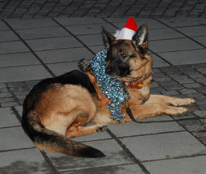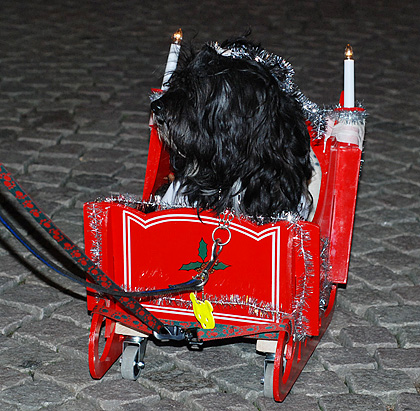 Så är årets luciaspektakel avklarat. Helt enligt traditionen eskorterade Borås Brukshundklubb stadens officiella luciafölje vid kortegen i samband med kröningen. I täten en tomteorkester, sedan vår lill-lucia, därefter x antal hundar (ovanligt många i år) i diverse fantasifulla utstyrslar och därefter eldig springare (=häst) med vagn och hela det ”stora” luciaföljet.