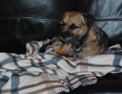 Nu har han fått en egen fleecefilt i soffan, och trots att den inte ligger på hans favoritplats (som också råkar vara husses favoritplats) så söker han upp den, i den andra soffan, och somnar gott.