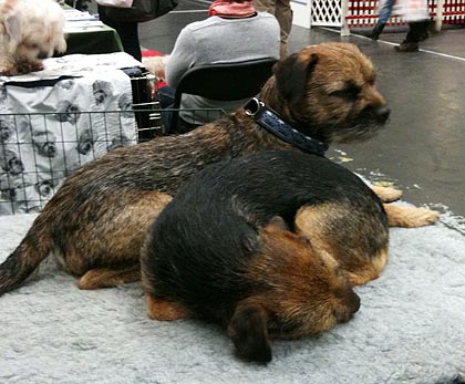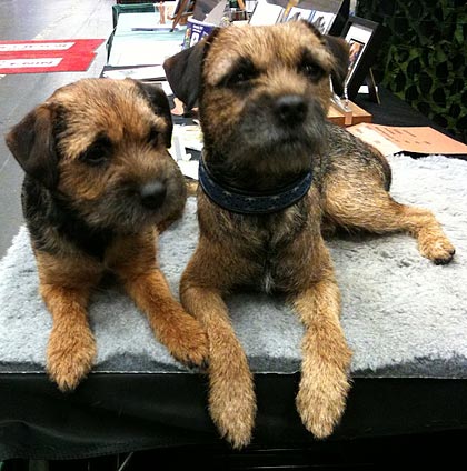 Även idag hade vi sällskap av Sot i montern, men den här gången med husse som följeslagare. Idag var det betydligt mer action än i torsdags. Karlsson & Sot har nog hälsat på fler människor än vad kungen & drottningen gör under en genomsnittlig kungamiddag.  🙂 De har varit fina och trevliga representanter för rasen och jag och Sot-hussen har pratat oss varma för borderterrier.