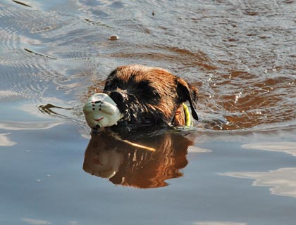 6. Inkallning med ställande – godkänt. Om han springer från mig mot en leksak stannar han klockrent. Varför kan han inte stanna lika bra på väg mot mig? Han förstår ju uppenbarligen vad jag menar i alla fall.