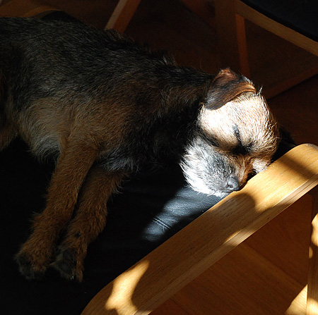 Vid middagstid satte jag mig, väl påklädd, i solen på altanen för att njuta en stund. Stunden blev en kvart, sen gick solen i moln och då förlorade det raskt sin charm. Min vanliga tur. 😦 Jag gör nog ett nytt försök i morgon om solen visar sig, för både det grönbleka fejset och själen mår nog bra av det. Karlsson satt i mitt knä och njöt han också, med ansiktet mot solen (eller möjligen utsikten?) hela kvarten.