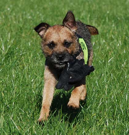 (En sekund innan tävlingsledare sa ”ta föremål” bestämde terriern sig för att slänga iväg apporten över vänster axel! Alltid ska det vara nå’t…)