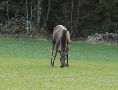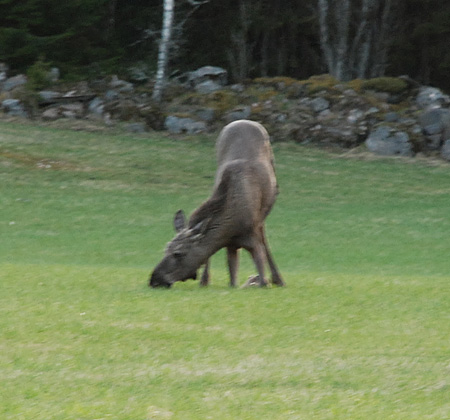Nu har väl jag fått älgterapi så det räcker för åtminstone en vecka? Problemet är att jag misstänker att kon tänker dumpa kalvarna hos oss, precis som vanligt… Inte vet jag hur en dräktig älg ser ut, om det går att avgöra på bilderna – men det är väl ändå dumpdags antar jag?