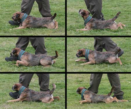 Privatlektionen ägnades framför allt åt krypet och lite nya grepp där. Om det funkar på tävling är ju en annan sak, men det blev åtminstone något nytt att testa, och på träning funkar det redan tämligen klockrent. Han fattar ju oftast väldigt fort det lilla trollet och så även den här gången. Fjärrdirigeringen ägnade vi också en del tid åt.