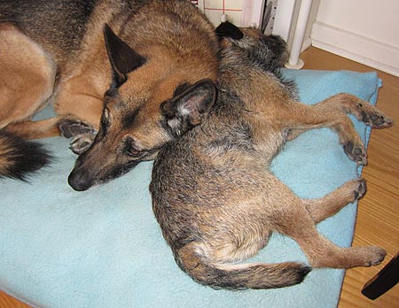 Karlsson är ju min alldeles egna, och första, kamphund. Han älskar ju att kampa och dra i saker som belöning, och det uppskattar jag naturligtvis. Iza har aldrig varit mycket för att leka, men gjort det lite halvengagerat för min skull. Det blev lite bättre efter kastreringen, men i Karlssons division har hon aldrig spelat. Nu har vi äntligen fått kamphunden på bild också. 🙂