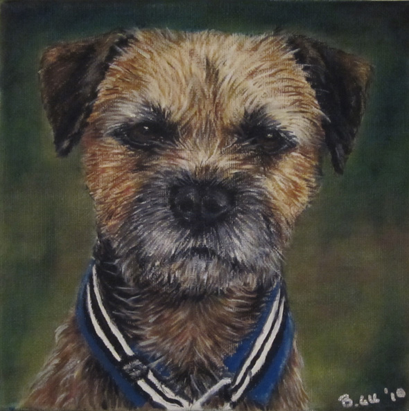 Jag vet faktiskt inte vem som har målat den. Bara att det är någon borderterriermänniska (uppfödare?) i Tyskland.
