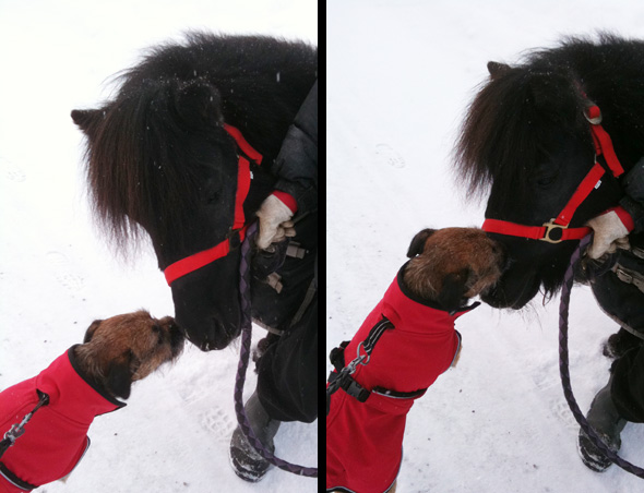 Han har ju inte direkt umgåtts med hästar på nära håll, men han skötte sig jättefint. Shettishingsten har två egna rottisar så hundvanan är det inget fel på, men han tyckte nog att Karlsson var en ovanligt lustig liten filur. 🙂 Bilderna är tagna med iPhonen, som var det enda som fanns till hands.