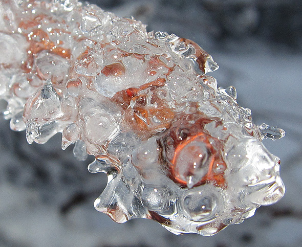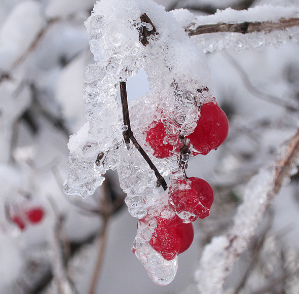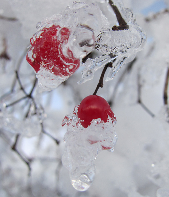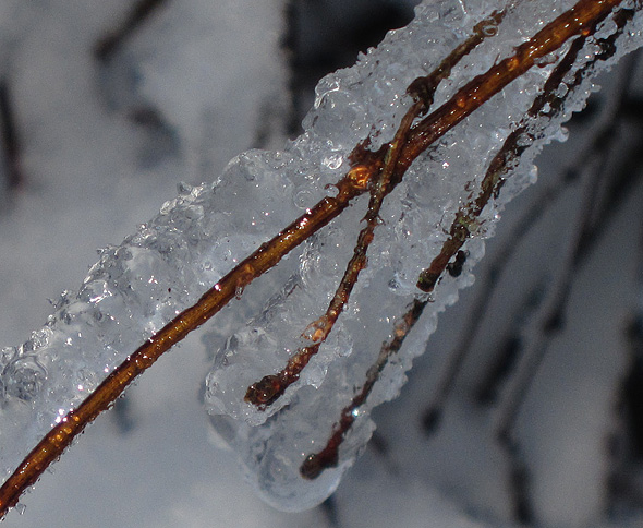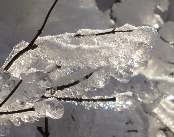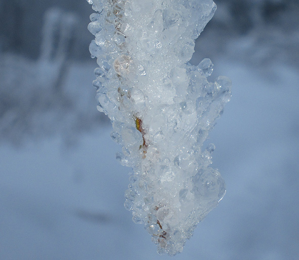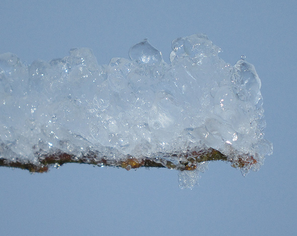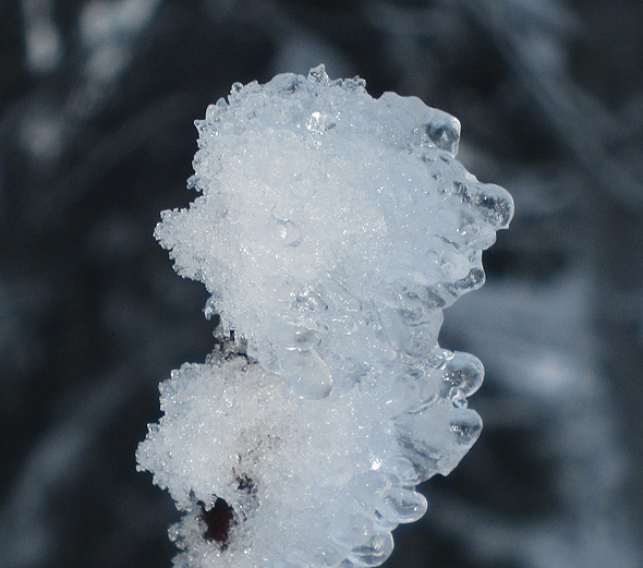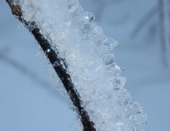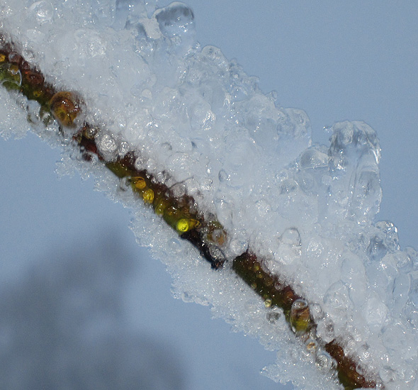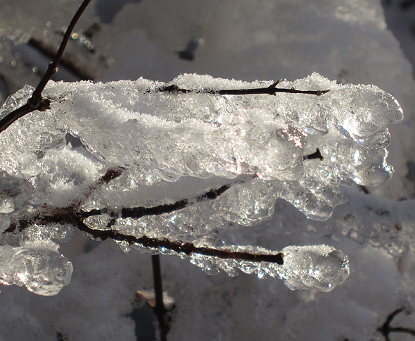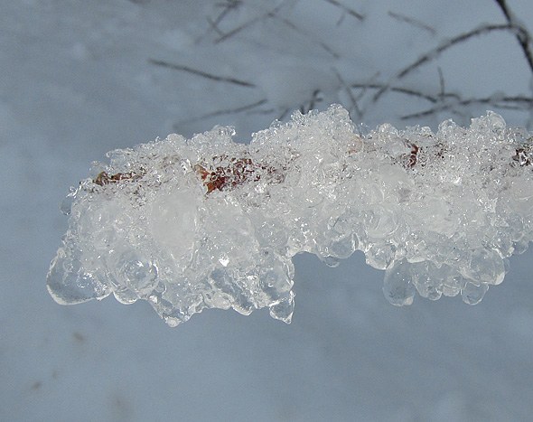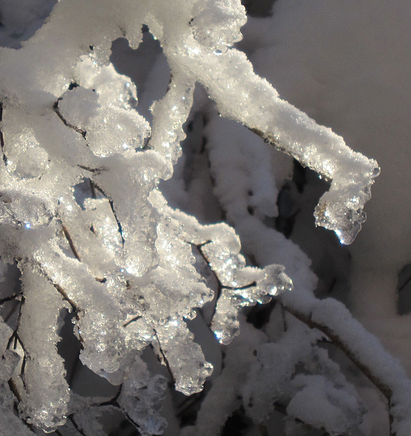 Gårdagens skumma väder ledde inte till plusgrader på vårt ”fjäll” utan det höll sig runt nollan, och alltså finns det en del spektakulära skapelser kvar på växtligheten, och när det kombineras med solsken så kliar det naturligtvis i avtryckarfingret, så jag tänker alltså plåga mina stackars läsare med några vinterbilder till. Eller också klickar ni helt sonika vidare till en annan blogg. 😉