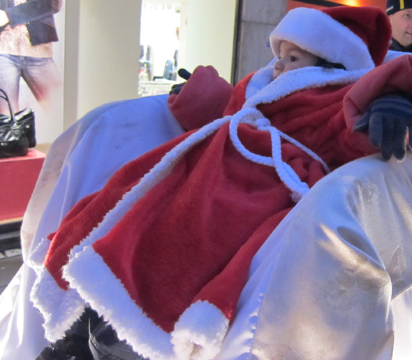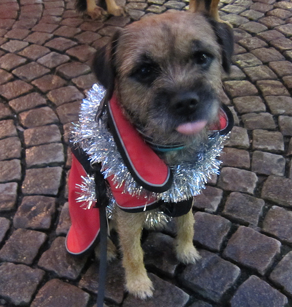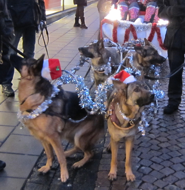 Igår var det dags för den traditionella luciakröningen på Stora Torget i stan, och därmed även dags för klubbens engagemang som går ut på att eskortera ”stor-lucia” med en ”lill-lucia” (som i år blev en tomte) dragen av hundar. Ett par varv runt torget brukar det bli, och efter lill-lucias vagn går ett gäng mer eller mindre julklädda hundar. I år var vi tyvärr inte så många som vi brukar vara, men det var ett uppskattat inslag ändå, tror jag.