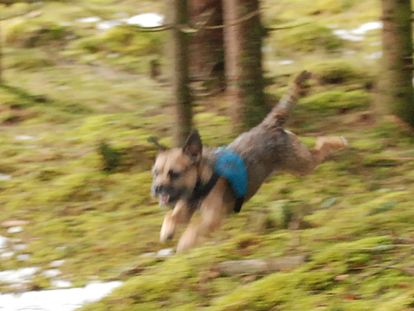Ytterligare en bild från gårdagens övningar, som mitt i all oskärpa ändå är rätt mysig. Glada hundar ÄR mysigt, även om de är lite luddiga i kanten! 🙂