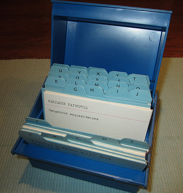 Ett arkiv? Med maskinskrivna kort? Vafalls? Jag menar… sååå ofantligt många skivor har jag inte (jo, de finns kvar, allihop), men uppenbarligen hade jag lite för mycket fritid those days. 🙂