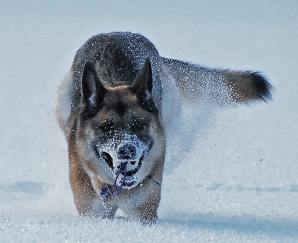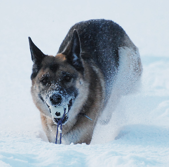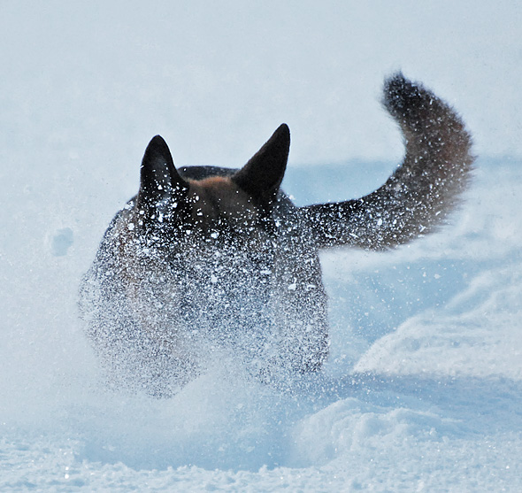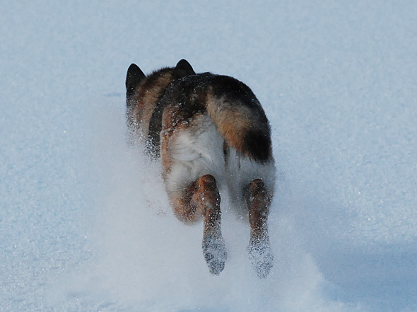 Storhunden, aka gammeltanten, verkar dock ha tittat för mycket på Bambi och gick omedelbart på näsan med ett ben i varje väderstreck så snart vi lämnade tomten. Har en känsla av att just det rörelsemönstret inte är det bästa för (snart) 11-åriga schäfertanter, men vad vet jag? Hon verkar dock inte bekymra sig det minsta, utan fortsätter glatt att ånga på. Och just ångandet gör ju inte direkt min tillvaro lättare. Och säger jag till henne, modell hålldigiskinnetannarsskadudö, som det gärna blir när paniken är nära, så drar hon bara ännu mer. *suck*