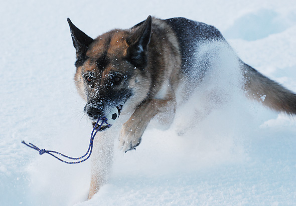 Den lilla terriern fick naturligtvis också tårta, är det kalas så är det, men bara en halv bit, som han åt något mer stillsamt och städat. Det är också filmat, men inte lika actionfyllt. 😉