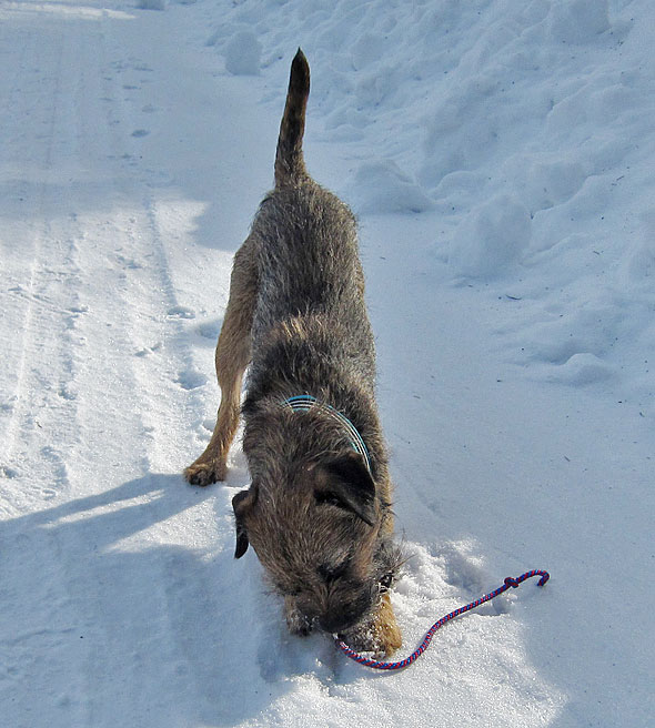 Karlsson var valp vintern 2006 och då var det också smällkallt och massor med snö. Han trampade inte gräs förrän i april månad, men han blev ju rätt välartad ändå. Och rumsren blev han snabbt eftersom han förstod att han fick gå in i värmen så fort han uträttat sina behov. 🙂