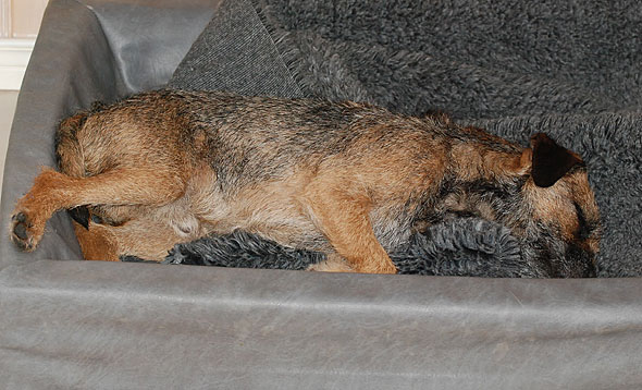 En dryg timmes tokspringande och kampande blandat med seriös träning verkar ha tagit musten ur den lille, åtminstone tillfälligt. Det hindrade i och för sig inte att han jagade Iza runt köket några varv när vi kom hem, men sen … svimmade han. 🙂