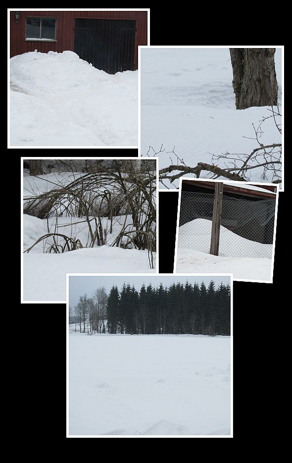 Efter gårdagens inlägg kom det en kommentar som ville påskina att vi har väldigt lite snö. Så är inte fallet! Dagsfärska bilder tagna på (och från) tomten.