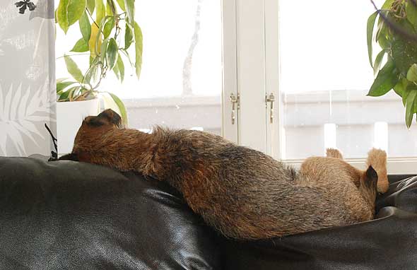 Gullig han är:) Klart bästa spaningsplatsen förstår jag.