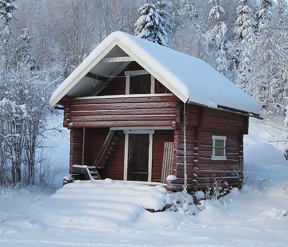 Praktiskt taget varje dag i snart 20 års tid har jag passerat jag detta härbre, och jag har hela tiden varit djupt fascinerade och undrat hur i hela friden det hamnat där? Härbren är ju något fullt normalt om man är uppväxt i Dalarna som jag, och härbrena befinner sig i Dalarna. Men här…?