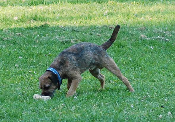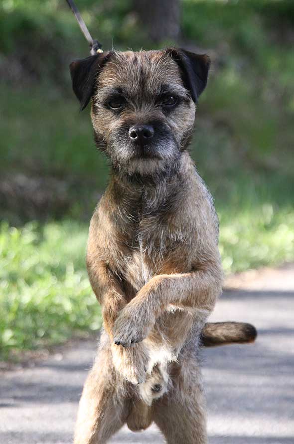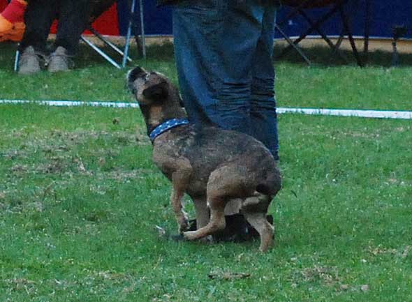 Kommer inte ihåg hela namnet på hunden, men det är iaf en Bombax-hund. Kommer väl i nästa nummer av borderterrierbladet om inte annat.