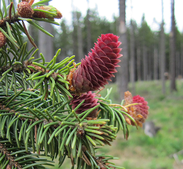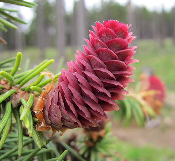 Vinnare blev Tina, och jag lärde mig något nytt på kuppen. Jag har aldrig hört talas om granblommor men efter lite googlande kan jag konstatera att det tydligen är så de blivande kottarna heter, in the beginning, innan de vänder sig nedåt … typ. Dessa sitter i toppen på en vindfälld gran. Normalt sett ser man dem ju inte eftersom de sitter så högt upp.