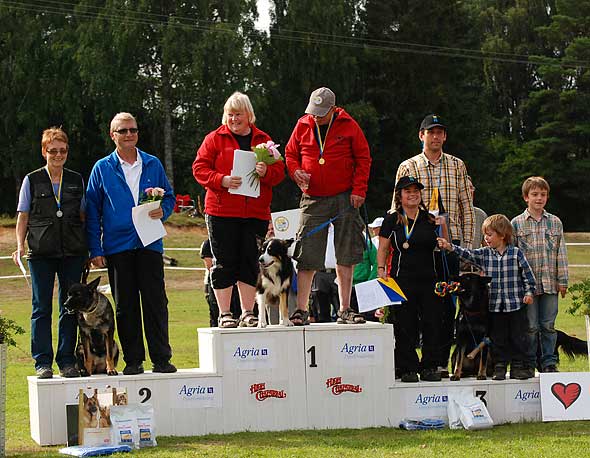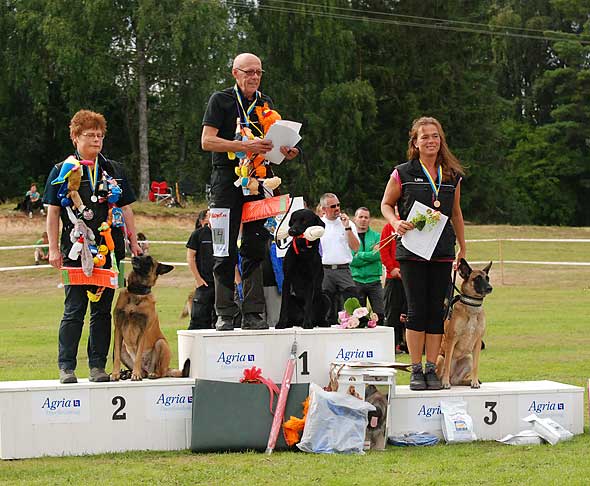 - Guld i spår till Elfsborgs BK (min andra ”reservklubb”) genom Bernt Carlsson och Mandylike’s Overdrive ”Tjabo” som tills för 1,5 år sedan var medlemmar i min hemmaklubb, Borås. Vilken fantastisk prestation de gjorde! Bernt har alltså passerat pensionsåldern med rätt god marginal. Han startade nu sitt först SM och går och tar hem guldet! Nog kom det en liten tår även i mitt öga när de stod på pallen… 🙂